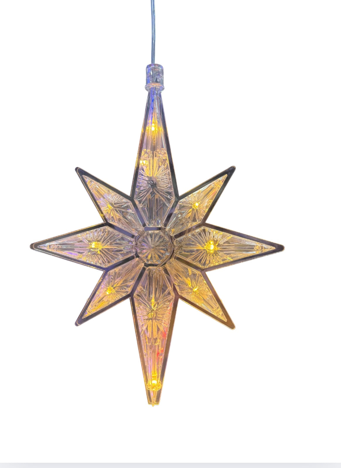 Parlak sarı LED ışıklarıyla sıcak bir ambiyans oluşturan bu yıldız süs yılbaşı ağacı, duvar, pencere veya vitrin dekoru olarak harika görünür.